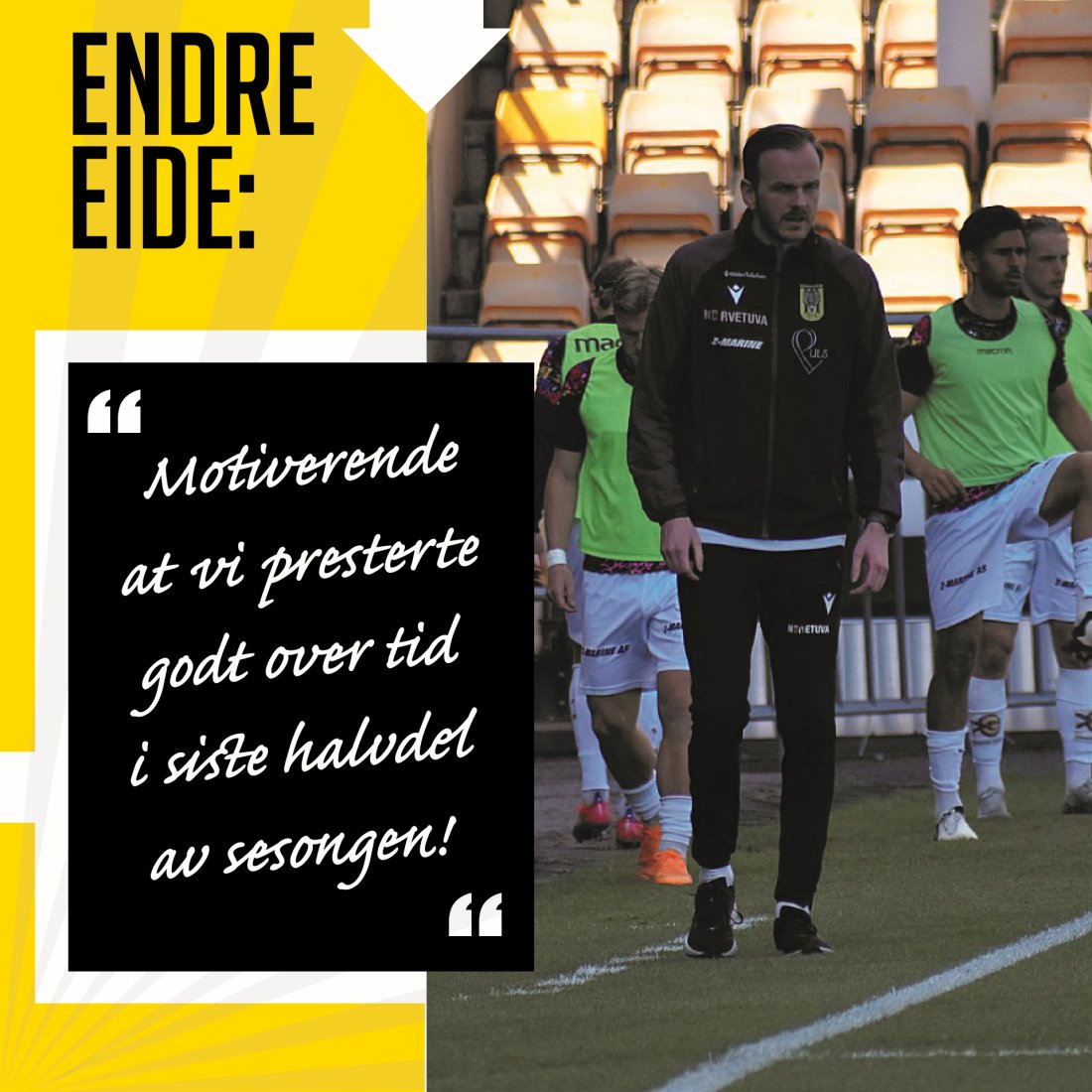 Da ble det liv i kampen og jeg syns ikke vi var gode nok til å punktere det. Da ble det i stedet en omgang preget av forsvarsspill. Vi var unøyaktige i valg og pasninger som åpnet kampen opp. Det profitterte Mjøndalen på slik at kampen levde helt inn. Med det sagt syns jeg det var greit at vi fikk kjenne litt på det. Det er viktig å stå i kampen og i et resultat. Men vi tar med oss noe positivt og så ser vi klare ting vi kan forbedre.